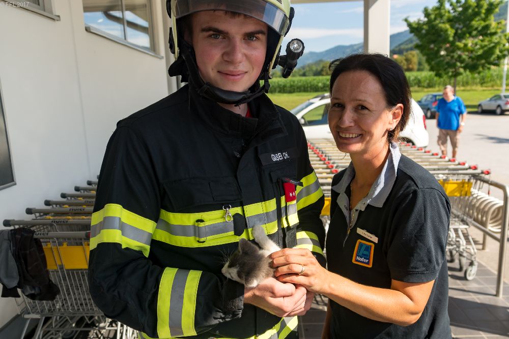 Eine Junge Katze versteckte sich unter einer Müllpresse und musste von der Feuerwehr geborgen werden.