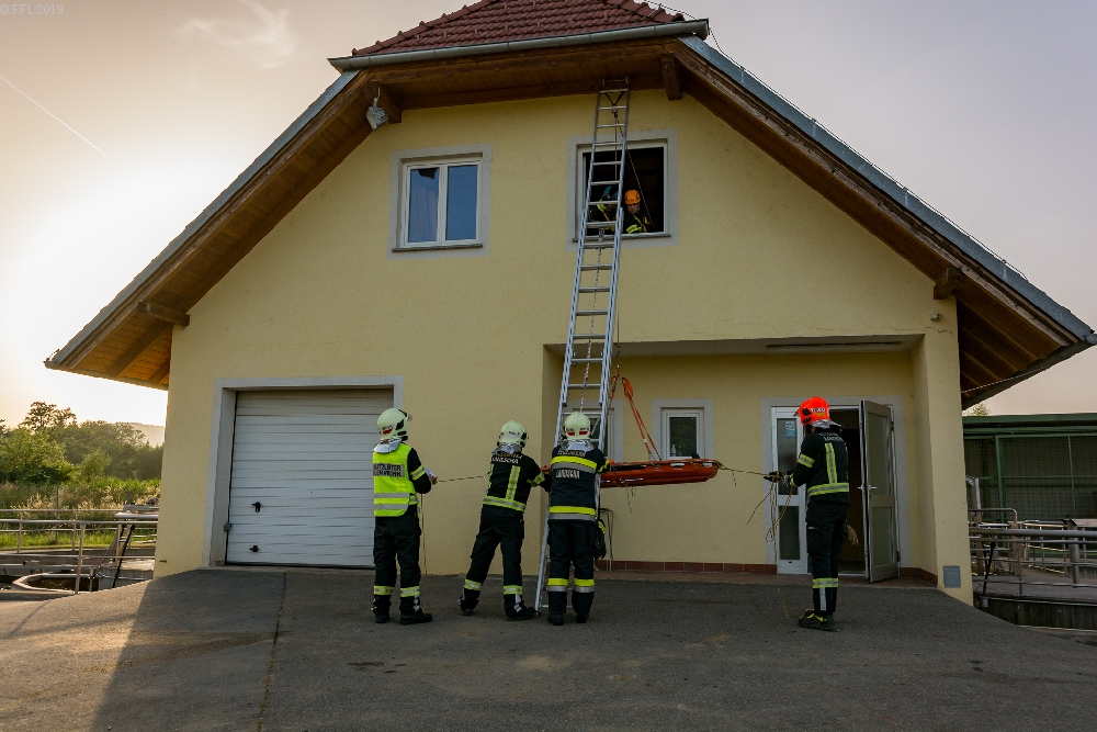 Am 15.06.2019 fand eine Übung am Gelände der Kläranlage Thannhausen statt. Übungsannahme war ein Komposthaufenbrand und eine Menschenrettung aus dem Ersten Obergeschoß durch einen MRAS Trupp. Herstellung eines Wasserbezuges und verlegen einer B- Zubringleitung vom Fladnitzbach mit Schlauchfahrzeug, Löschen des Komposthaufenbrandes mit C-Rohre, Einstieg in das erste Obergeschoß über den Leiterweg und ein Gekipptes Fenster, Personenrettung durch einen MRAS Trupp und Korbtrage. Herzlichen Dank an LM Johannes Hiebler- Texer für die Übungsvorbereitung und die Gemeinde Thannhausen für die Zurverfügungstellung des Übungsobjektes.