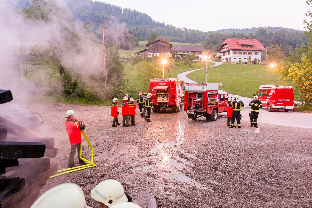 Nach dem Abendessen lautete der Einsatzbefehl „Verkehrsunfall mit eingeklemmter Person sowie Holzstapelbrand in Ponigl“. Bei dieser Übung konnten die Jugendfeuerwehrmänner den Umgang mit dem Hydraulischem Rettungsgerät üben und einen Holzstapelbrand erfolgreich bekämpfen. Um ca. 21.00 Uhr konnte diese Übung, bei der alle begeistert und mit vollem Einsatz dabei waren, beendet werden. Nach der Versorgung der Gerätschaften fand dieser Tag einen gemütlichen Ausklang im Feuerwehrhaus.