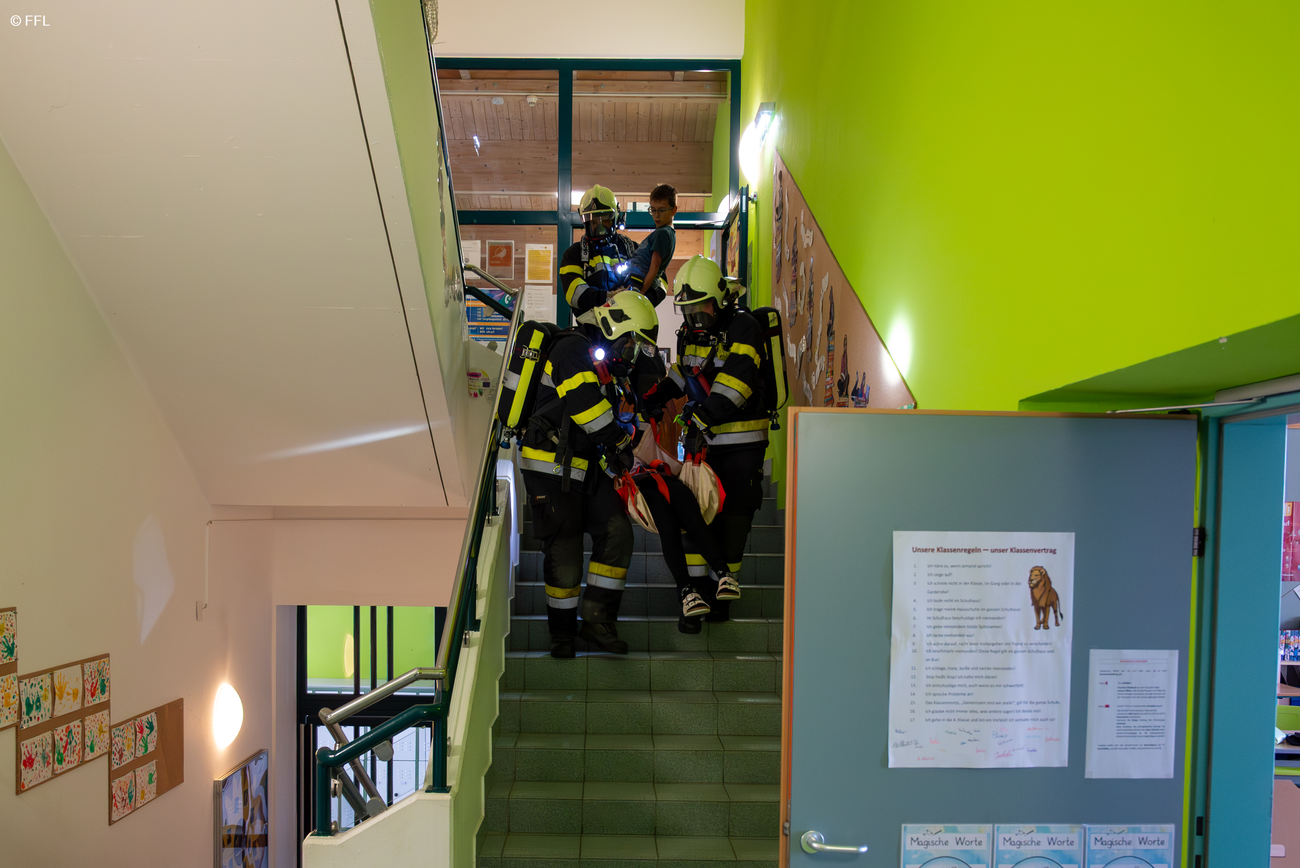 Am 15. Oktober führte die FF Landscha eine Räumungsübung in der Volksschule Peesen durch. Übungsannahme war eine starke Rauchentwicklung im Bereich der Werkstätte der Volksschule.