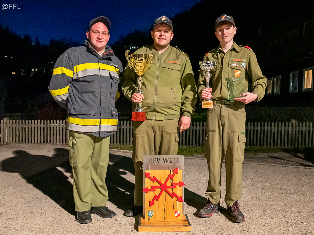 3. Platz in der Wertung Gruppe Bereich Weiz von JFM Preißler Elias, PFM Mauerhofer Bernhard und LM d.F. Reiser Dominik