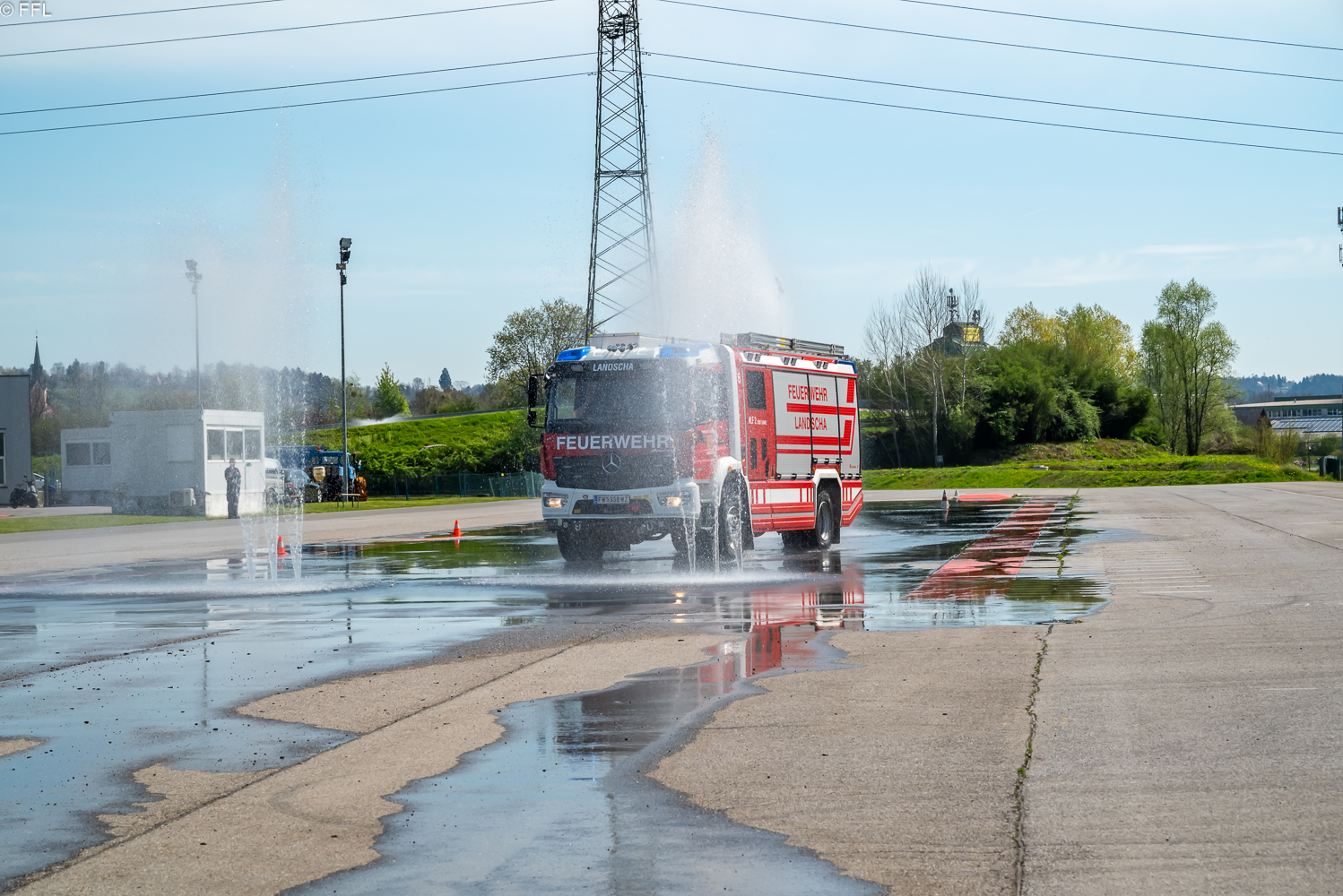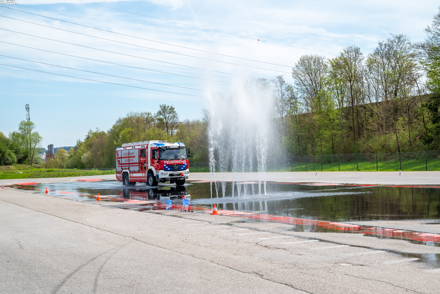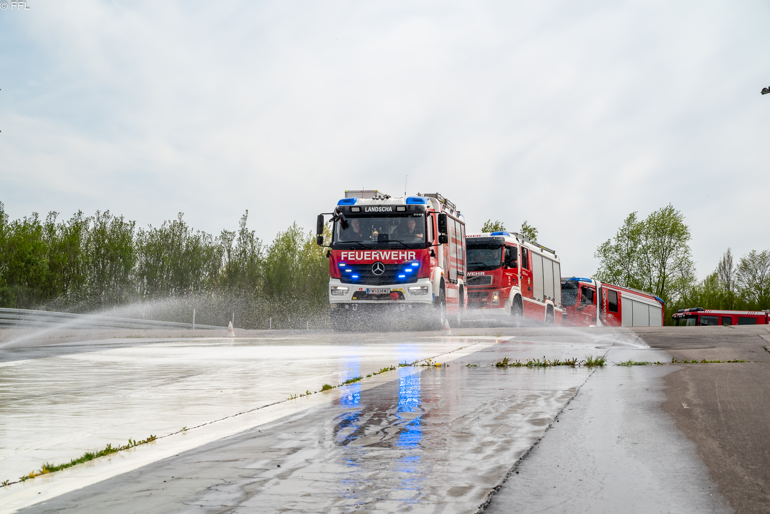 Am Sonntag, 23.04.2023 nahmen die drei Kameraden, Franz Grüner, Martin Stadtegger und Dominik Reiser, mit dem HLF2 Tunnel am Fahrsicherheitstraining für Einsatzfahrer im ARBÖ Fahrsicherheitszentrum Ludersdorf teil.