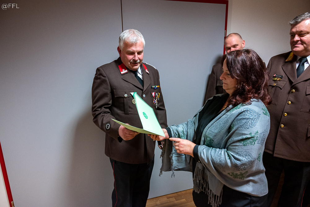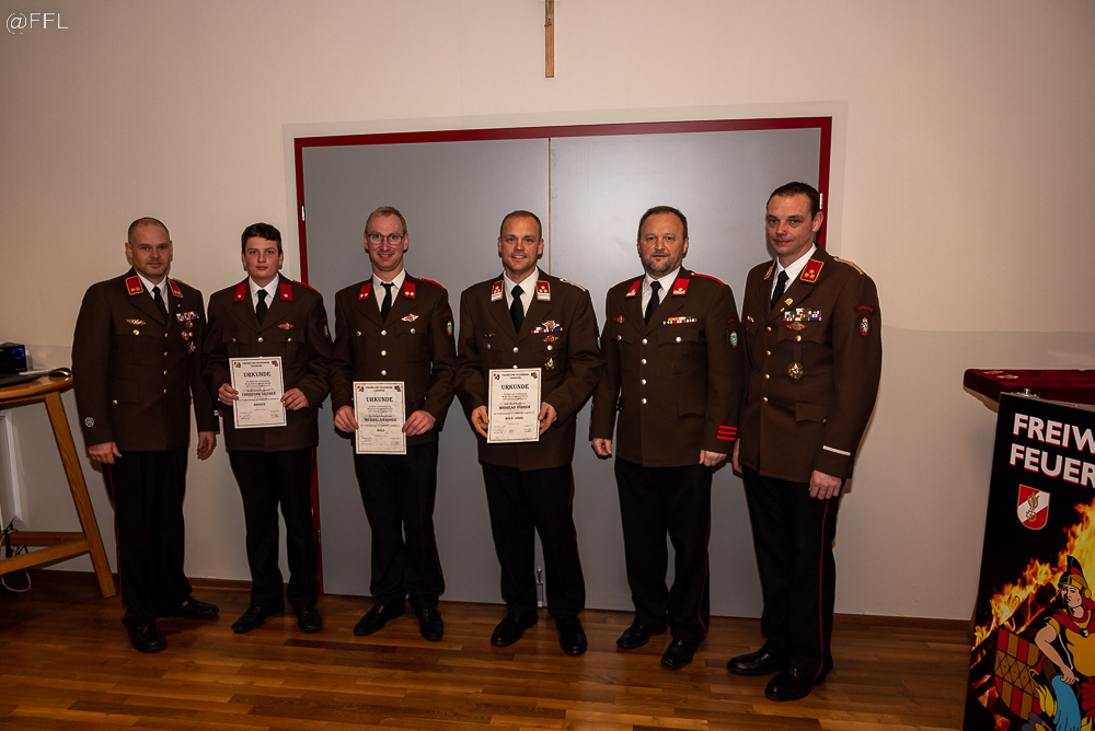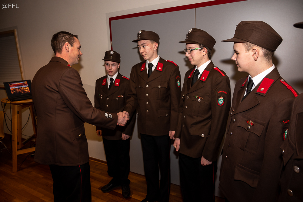 Im Anschluss wurden 5 Kameraden zum FM angelobt, 7 Kameraden befördert und verdiente Kameraden für ihre Leistung ausgezeichnet ( HBM Andreas Zöhrer und HLM Gerhard Zöhrer Verdienstzeichen 2. Stufe, LM Josef Glaser Medaille für 40 Jahre und EHBI Josef Schwaiger Verdienstkreuz in Bronze) . Besonders freute es uns wieder, fünf Jungfeuerwehrmänner als Neuaufnahme in unserer Mitte begrüßen zu können.