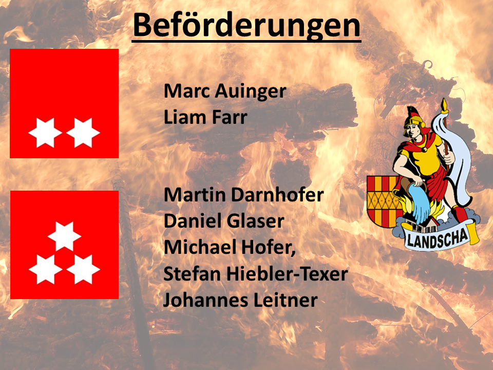 Im Jahresbericht ließ HBI Johannes Zöhrer das abgelaufene Einsatzjahr nochmals Revue passieren. Insgesamt rückte die Feuerwehr Landscha zu 251 Einsätzen aus, absolvierte 49 Übungen und zahlreiche Veranstaltungen, für welche die Kameraden der Feuerwehr Landscha rund 26786 freiwillige Stunden für die Allgemeinheit aufbrachten.