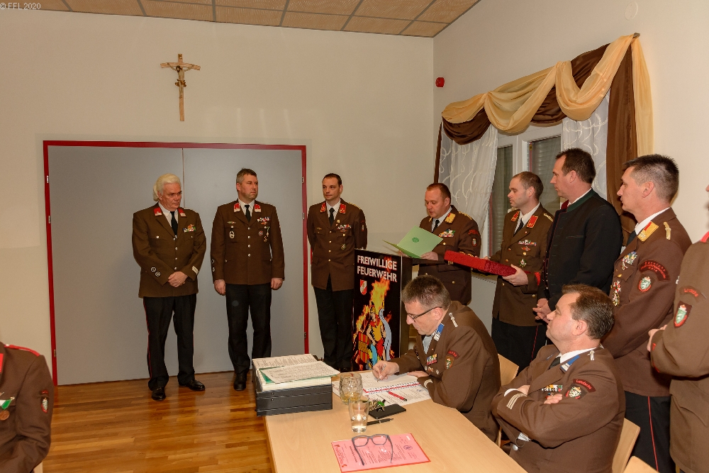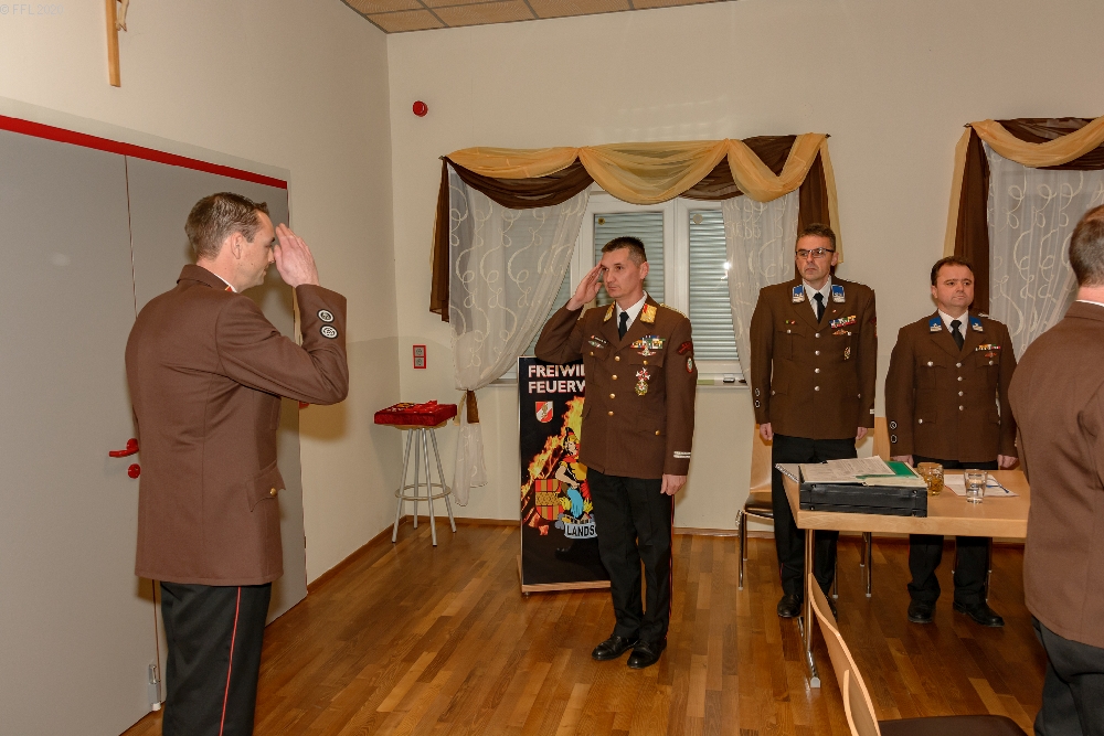 Bei der 96. Wehrversammlung der Freiwilligen Feuerwehr Landscha am 25.01.2020 im Feuerwehrhaus Landscha konnte HBI Johannes Zöhrer zahlreiche Ehrengäste wie Bürgermeister Gottfried Heinz, BR Thomas Brandl, Pfarrer Anton Herk-Pickl, ABI Christian Lechner, Vizebürgermeister Johannes Strobl, Gemeindekassier Tanja Hierzberger, Bereichsatemschutzbeauftragten OBI.F Herbert Buchgraber, Abschnittsseniorenbeauftragten EHBI Josef Schwaiger, das Kommando der Stadtfeuerwehr Weiz ABI Christian Lechner und OBI Karl Feichter sowie zahlreiche Ehrendienstgrade begrüßen.