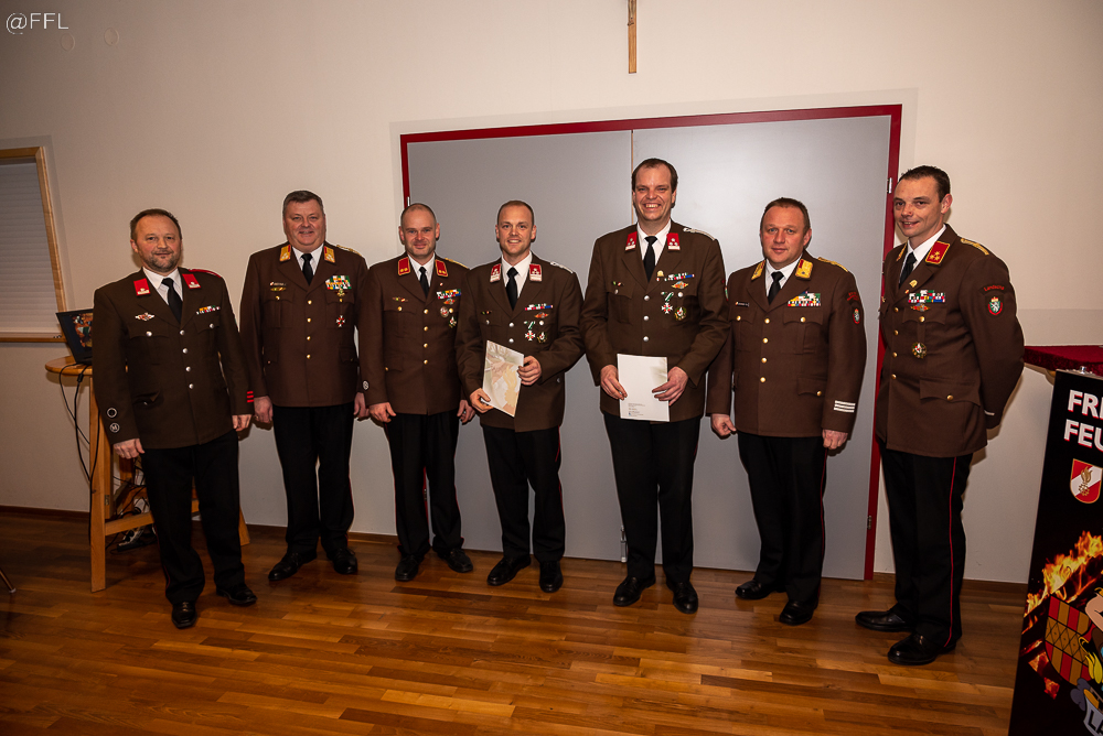 Im Anschluss wurden 5 Kameraden zum FM angelobt, 7 Kameraden befördert und verdiente Kameraden für ihre Leistung ausgezeichnet ( HBM Andreas Zöhrer und HLM Gerhard Zöhrer Verdienstzeichen 2. Stufe, LM Josef Glaser Medaille für 40 Jahre und EHBI Josef Schwaiger Verdienstkreuz in Bronze) . Besonders freute es uns wieder, fünf Jungfeuerwehrmänner als Neuaufnahme in unserer Mitte begrüßen zu können.