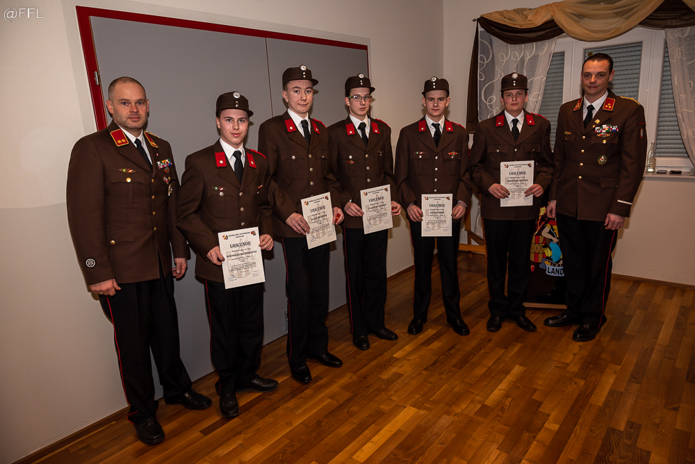 Im Anschluss wurden 5 Kameraden zum FM angelobt, 7 Kameraden befördert und verdiente Kameraden für ihre Leistung ausgezeichnet ( HBM Andreas Zöhrer und HLM Gerhard Zöhrer Verdienstzeichen 2. Stufe, LM Josef Glaser Medaille für 40 Jahre und EHBI Josef Schwaiger Verdienstkreuz in Bronze) . Besonders freute es uns wieder, fünf Jungfeuerwehrmänner als Neuaufnahme in unserer Mitte begrüßen zu können.