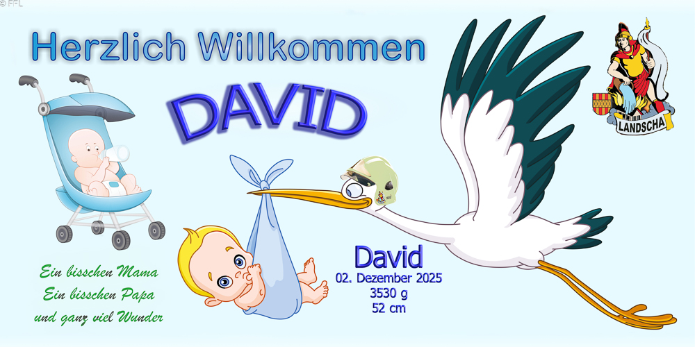 Die Freiwillige Feuerwehr Landscha wünscht der Familie Philipp, Helene und dem kleinen David alles Gute, viel Glück und vor allem Gesundheit für die Zukunft.