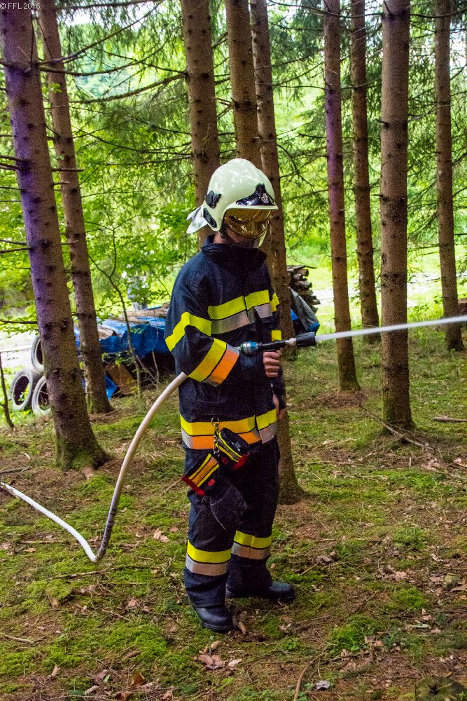 Am 24. Mai fand eine Übung auf der Teichanlage in Peesen statt. Aufgabenstellung: Wasserbezug herstellen, löschen des Waldbrandes mit D-Rohren, HD-Rohren, C-Rohren und schützen der Fischerhütte mit C-Rohr, Hydroschild und Wasserwerfer.