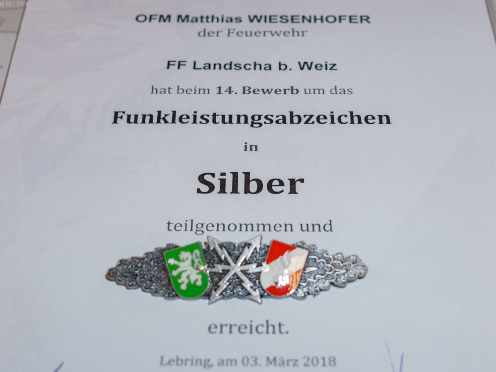Am 03.03.2018 fand der Bewerb um das FULA Silber und Gold in der Landesfeuerwehr und Zivilschutzschule Steiermark in Lebring statt. Fünf Kameraden der FF Landscha absolvierten diesen erfolgreich in Silber. Herzliche Gratulation an OFM Michael Frieß, OFM Christoph Glaser, OFM Martin Glaser, OFM Patrick Schaffler und OFM Matthias Wiesenhofer zu diesem Erfolg.