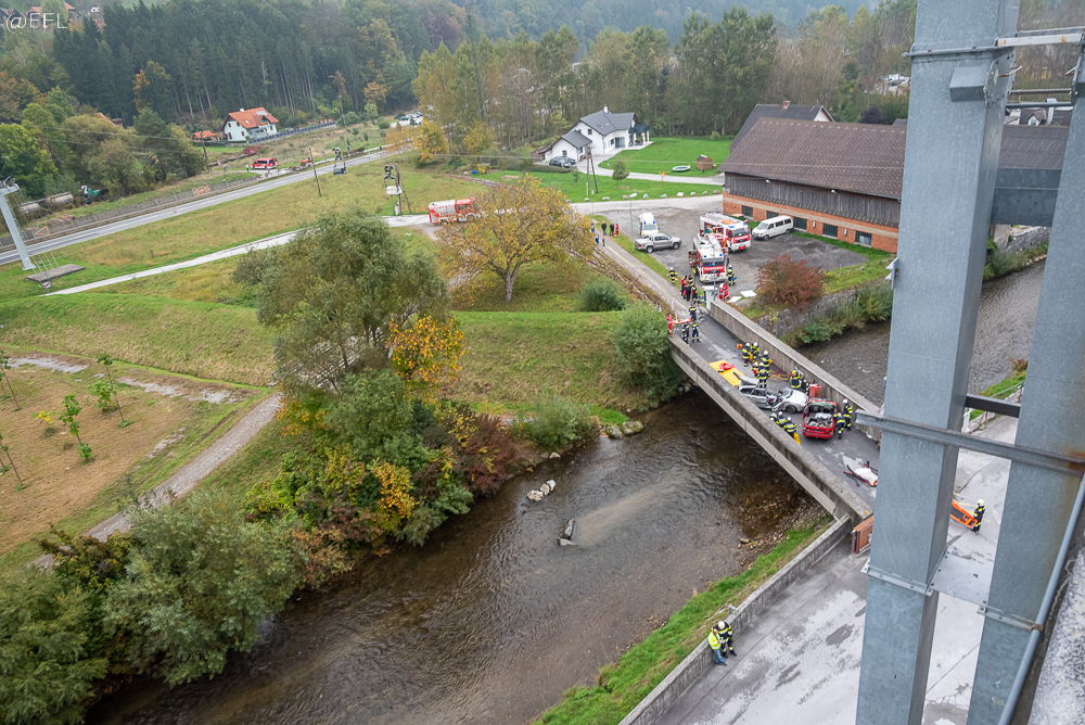 Am 15. Oktober fand die KHD 2022 in Oberfeistritz statt. Wir beteiligten uns mit dem KRFA-B und 7 Mann, als Teil des Technischen Zug 4 der KHD 57 unter dem Kommando von Zugskommandant ABI Christian Lechner an dieser, in verschiedenen Szenarien aufgeteilten Übung. Die Aufgabe des Technischen ZUG 4 bestand zum einen zwei unter Holzbloche, im Raasbach eingeklemmte Personen zu befreien und im Anschluss diese Bloche mit dem SRF zu bergen und am zweiten Übungsort, im Werksgelände der Firma Imerys Talc Austria, mussten 3 verletzte Personen, vom Dach, vom 3. und 4. Stock, erstversorgt, mit verschiedenen Rettungsgeräten gerettet und anschließend über das Stiegenhaus zum Übergabeort gebracht werden. Herzlichen Dank für die gute Zusammenarbeit und die Abschließende Verköstigung durch den S4 Zug.