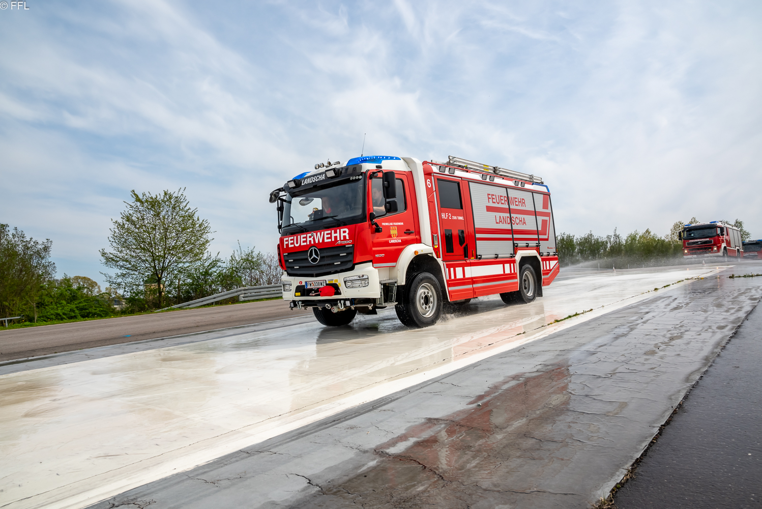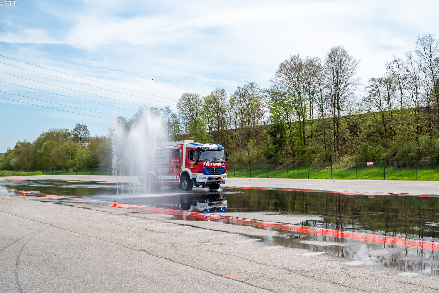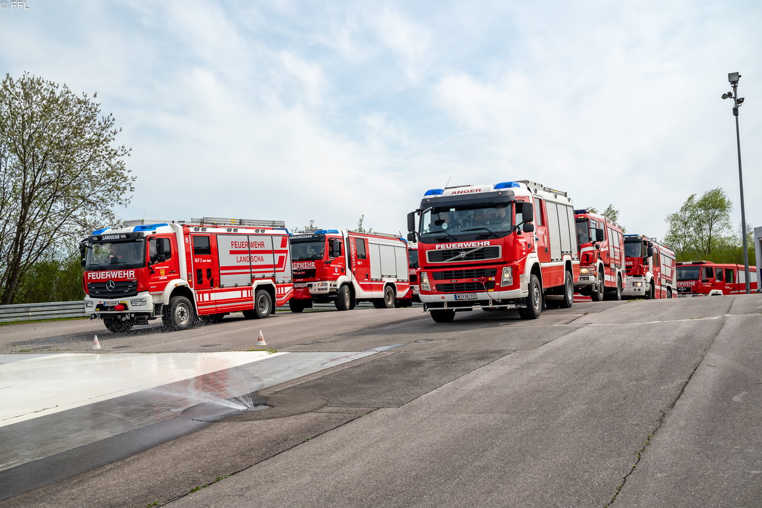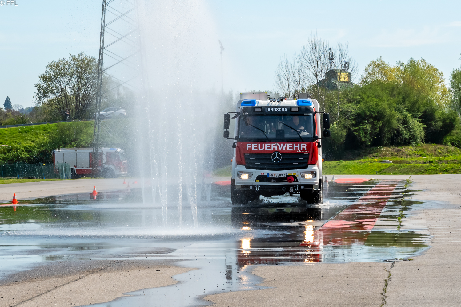 Am Sonntag, 23.04.2023 nahmen die drei Kameraden, Franz Grüner, Martin Stadtegger und Dominik Reiser, mit dem HLF2 Tunnel am Fahrsicherheitstraining für Einsatzfahrer im ARBÖ Fahrsicherheitszentrum Ludersdorf teil.
