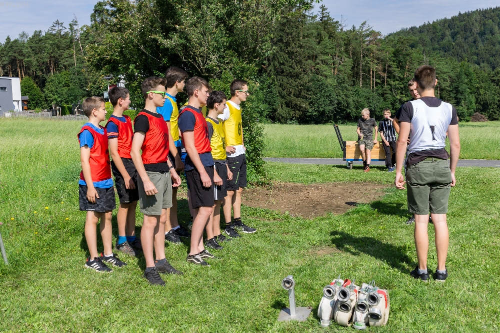 Nach dem Lagerbezug im Feuerwehrhaus ging es auf die Bewerbsbahn am Landscha für einige Trainingseinheiten, danach auf die Hindernisbahn zum Staffellauftraining, mit dem anschließenden gemeinsamen Mittagessen im Feuerwehrhaus konnten sich alle für das Nachmittagsprogramm stärken. Im Anschluss ging es wieder auf die Bewerbsbahn für einige Trainingseinheiten.