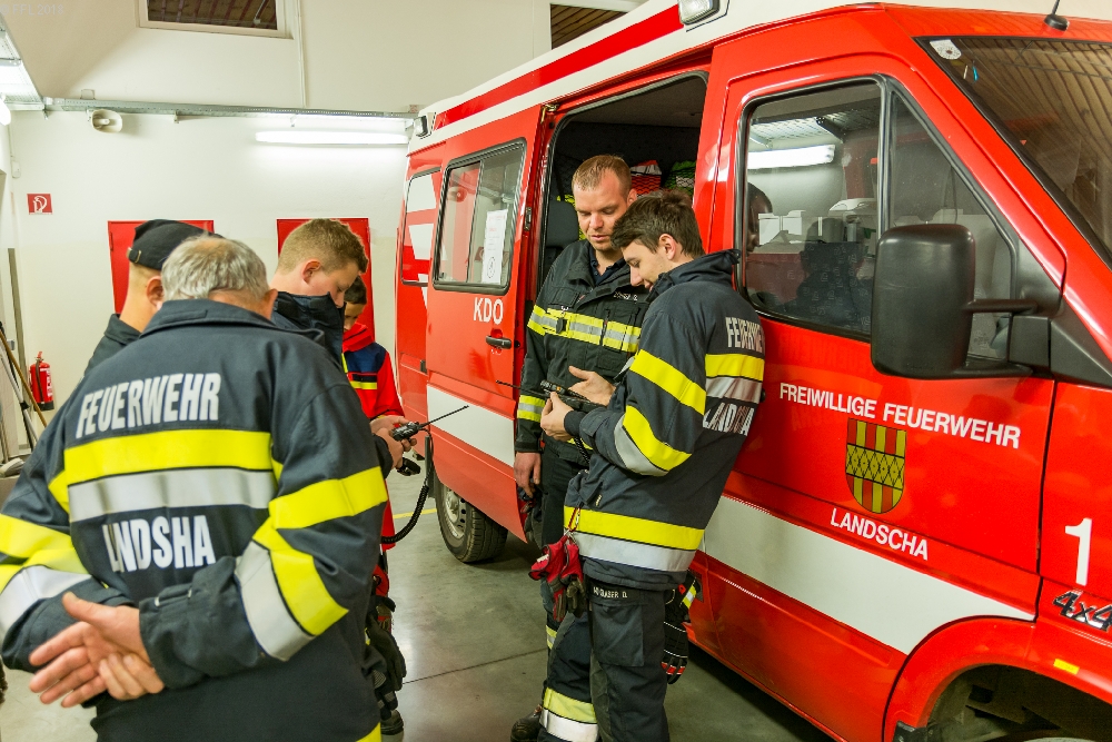 Am 20. Oktober fand eine Gesamtübung im Feuerwehrhaus Landscha statt. Die se Übung wurde auf sieben Stationen aufgebaut, die von den Fünfer Gruppen nacheinander abgearbeitet wurden. Die Stationen waren: 1. Digitalfunk, 2. CAFS- und Feuerlöscher, 3. Wärmebildkamera, 4. Vorbaupumpe und Saugköpfe, 5. Tür- und Fensteröffnung, 6. Knotenkunde und 7. Notstromaggregat und Beleuchtung
