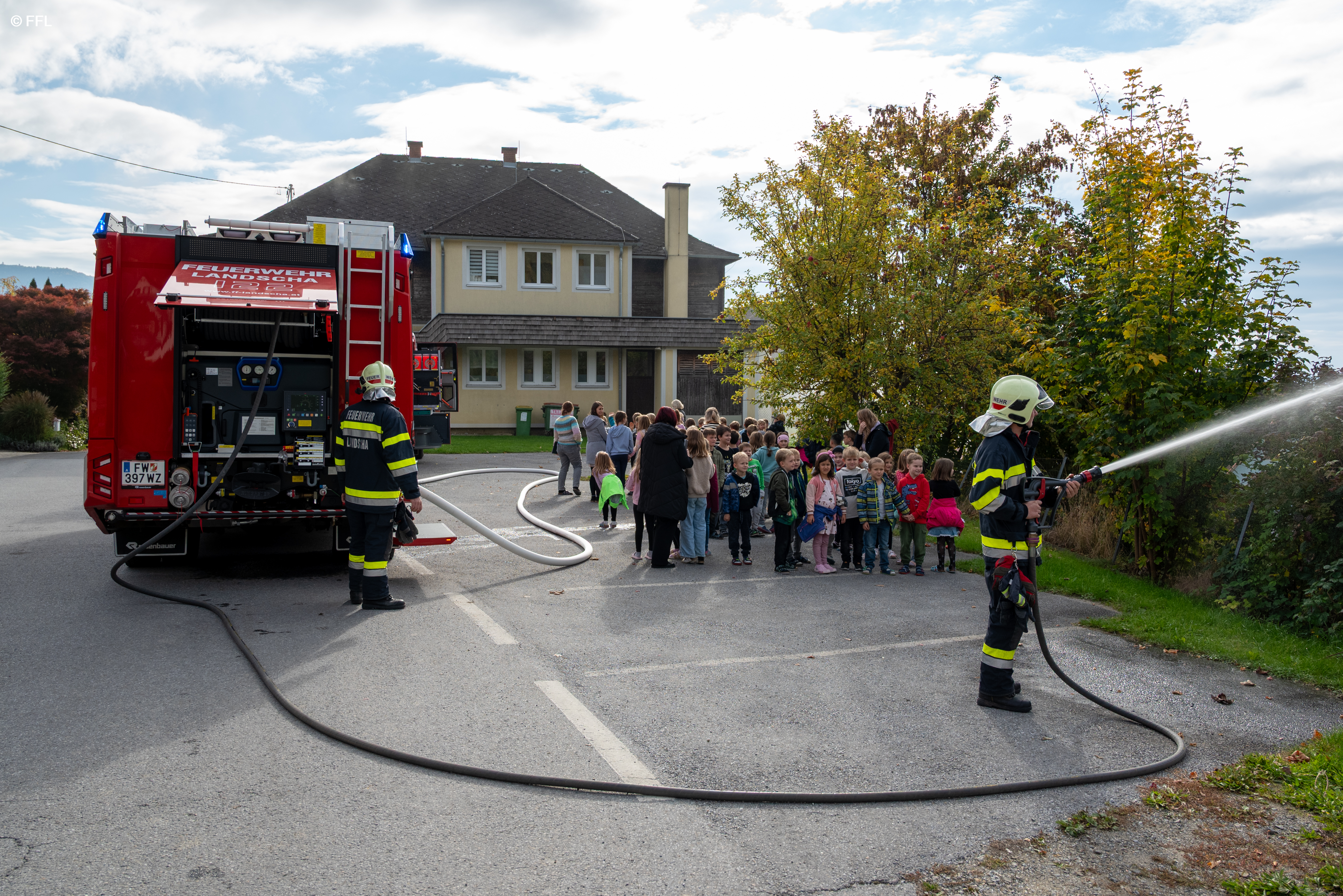 Am 15. Oktober führte die FF Landscha eine Räumungsübung in der Volksschule Peesen durch. Übungsannahme war eine starke Rauchentwicklung im Bereich der Werkstätte der Volksschule.