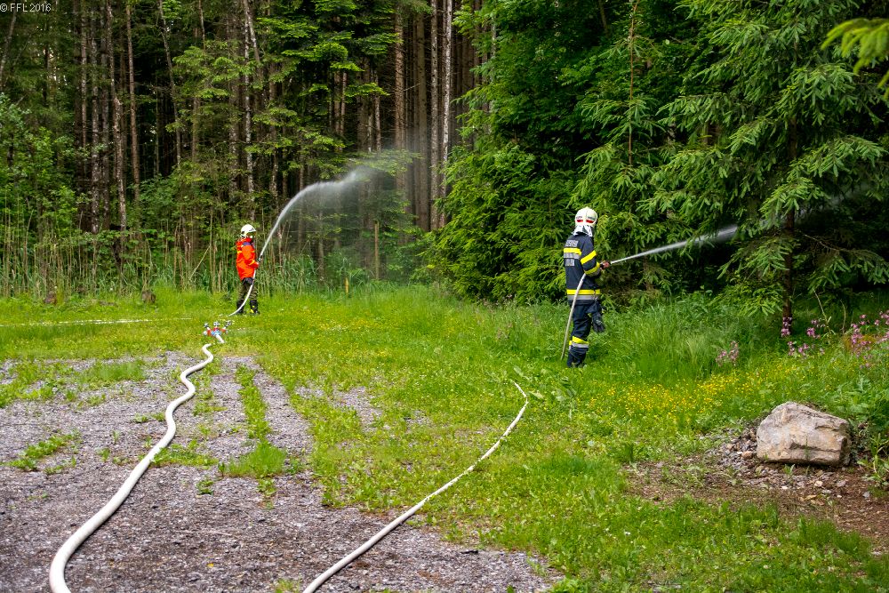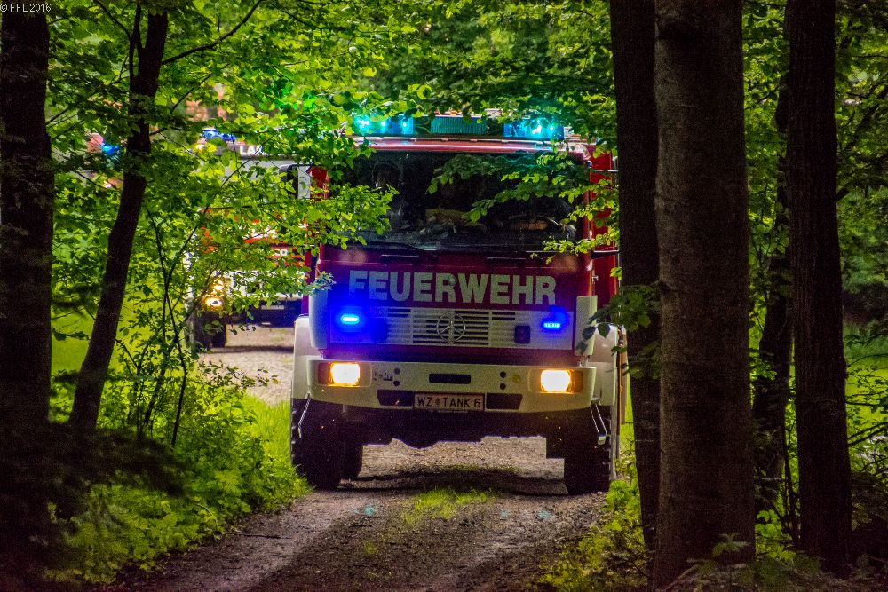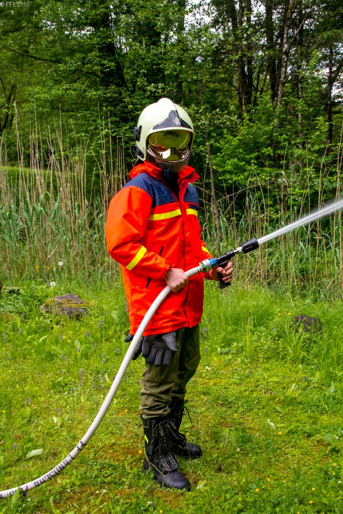Am 24. Mai fand eine Übung auf der Teichanlage in Peesen statt. Aufgabenstellung: Wasserbezug herstellen, löschen des Waldbrandes mit D-Rohren, HD-Rohren, C-Rohren und schützen der Fischerhütte mit C-Rohr, Hydroschild und Wasserwerfer.