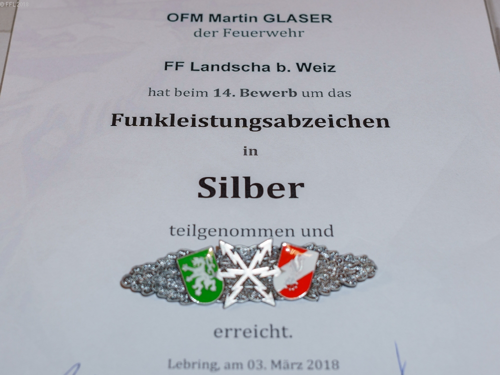 Am 03.03.2018 fand der Bewerb um das FULA Silber und Gold in der Landesfeuerwehr und Zivilschutzschule Steiermark in Lebring statt. Fünf Kameraden der FF Landscha absolvierten diesen erfolgreich in Silber. Herzliche Gratulation an OFM Michael Frieß, OFM Christoph Glaser, OFM Martin Glaser, OFM Patrick Schaffler und OFM Matthias Wiesenhofer zu diesem Erfolg.