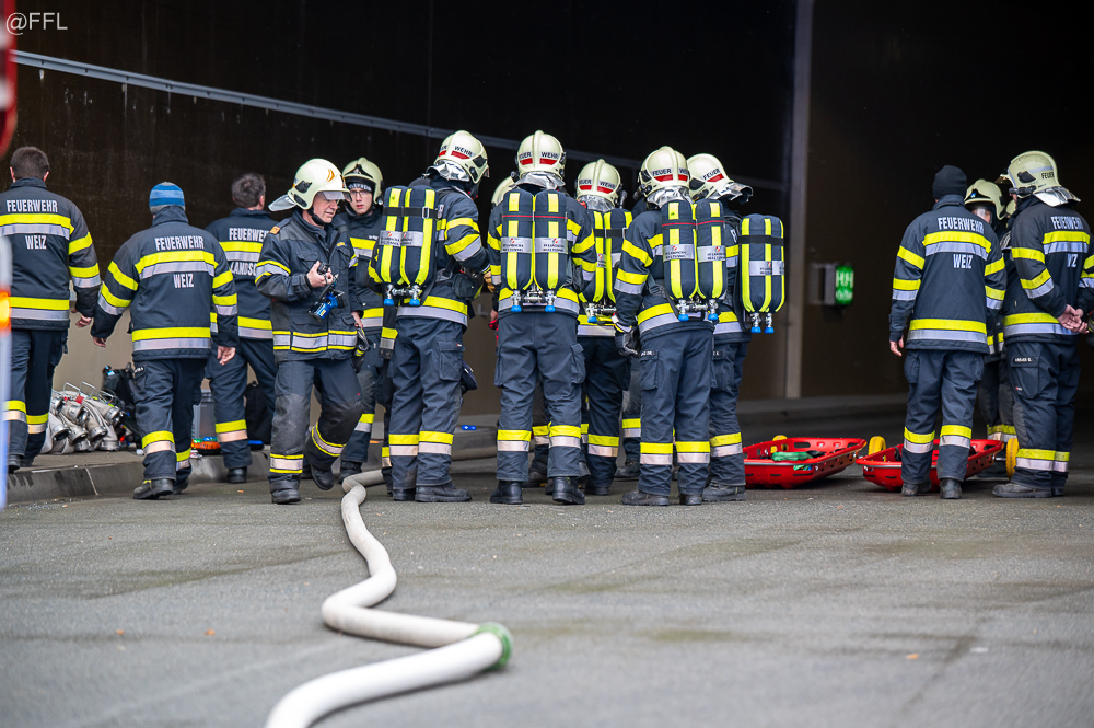 Am 02. April konnten die ersten 50 Mitglieder der Feuerwehren Weiz und Landscha die Tunnel Grundausbildung im Tunnel Weiz 2 erfolgreich absolvieren. Nach einer kurzen Einleitung und Begehung der beiden Tunnelanlagen wurde im Tunnel 2 ein Verkehrsunfall mit verletzten Personen sowie ein klein LKW Brand dargestellt. Jeweils eine Basiseinheit am Vormittag und eine am Nachmittag, bestehend aus rund 25 Mitglieder der beiden Portalfeuerwehren, sowie Vertreter des Roten Kreuzes konnten unter sehr realistischen Bedingungen die Brandbekämpfung sowie die Such- und Rettungsaufgaben in der stark verrauchten Tunnelanlage beüben. Herzlichen Dank an alle beteiligten Feuerwehrmitglieder für die ausgesprochen gute Zusammenarbeit bei dieser Ausbildung, sowie an die beiden Ausbilder HBIdF Karl Feichter und HLM Gerhard Zöhrer für die Organisation und Durchführung dieser Grundausbildung Tunnel.