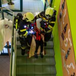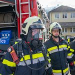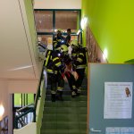Nach der Lageerkundung am Sammelplatz wurde festgestellt, dass vier Kinder im ersten Obergeschoss vermisst werden. Die vier vermissten Personen wurden vom Atemschutztrupp mithilfe eines Tragetuchs aus dem Gebäude gerettet.