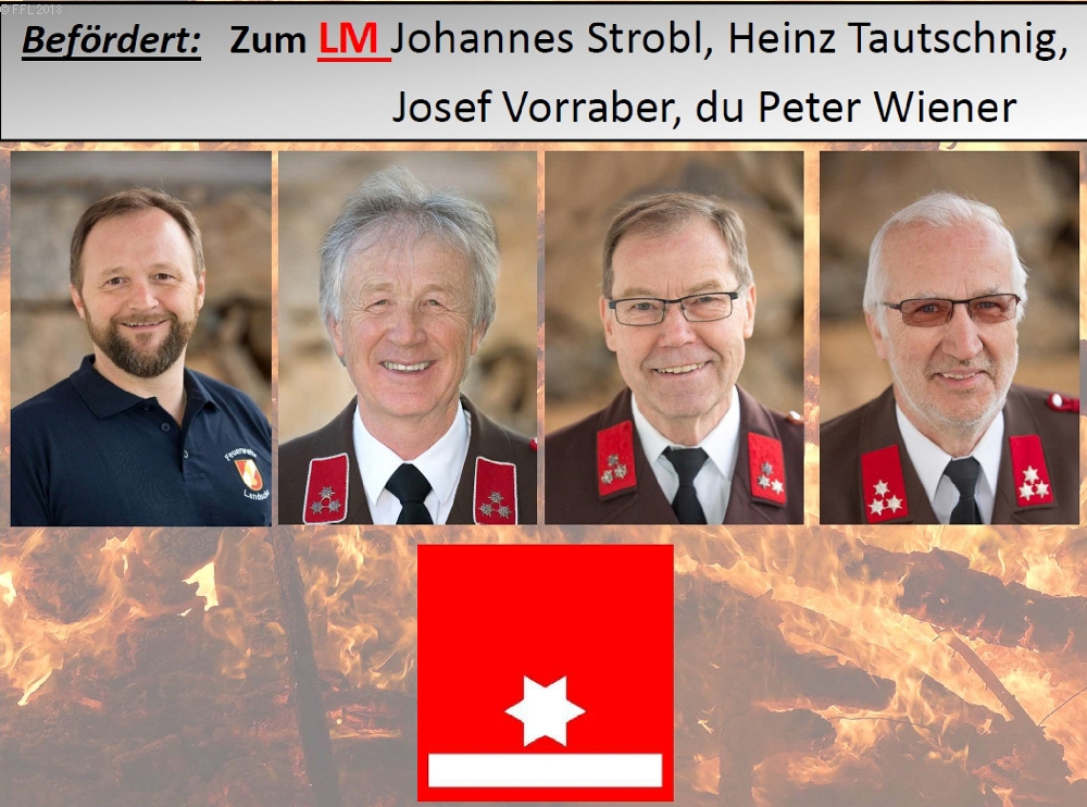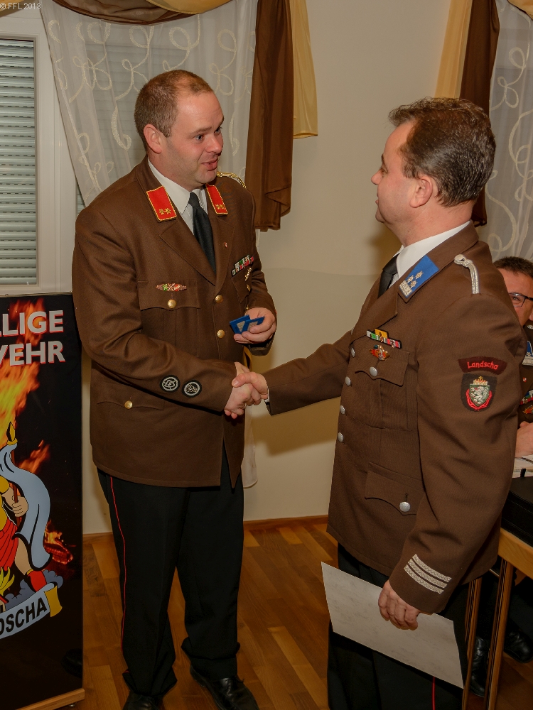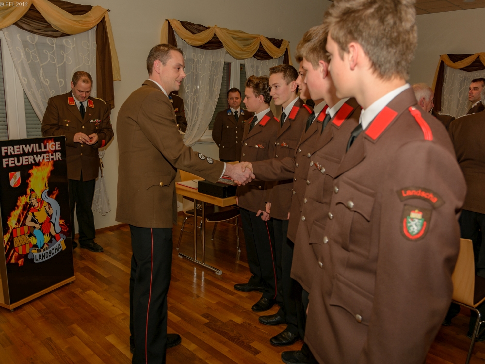 Bei der 94. Wehrversammlung der Freiwilligen Feuerwehr Landscha am 27.01.2018 im Feuerwehrhaus Landscha konnte HBI Johannes Zöhrer zahlreiche Ehrengäste wie Bürgermeister Gottfried Heinz, Dechant Mag. Anton Herk-Pickl, ABI Christian Lechner, Bezirksatemschutzbeauftragten OBI.F Herbert Buchgraber, sowie zahlreiche Ehrendienstgrade begrüßen.