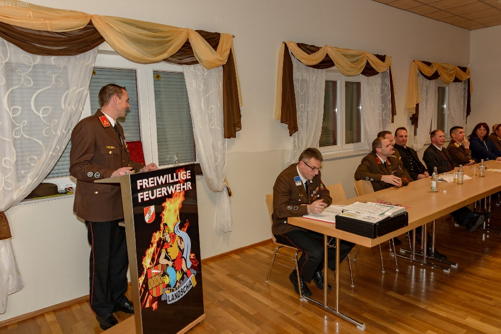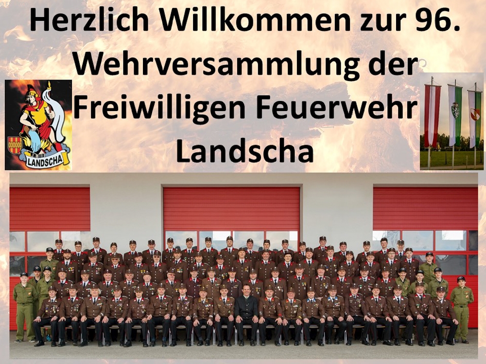 Bei der 96. Wehrversammlung der Freiwilligen Feuerwehr Landscha am 25.01.2020 im Feuerwehrhaus Landscha konnte HBI Johannes Zöhrer zahlreiche Ehrengäste wie Bürgermeister Gottfried Heinz, BR Thomas Brandl, Pfarrer Anton Herk-Pickl, ABI Christian Lechner, Vizebürgermeister Johannes Strobl, Gemeindekassier Tanja Hierzberger, Bereichsatemschutzbeauftragten OBI.F Herbert Buchgraber, Abschnittsseniorenbeauftragten EHBI Josef Schwaiger, das Kommando der Stadtfeuerwehr Weiz ABI Christian Lechner und OBI Karl Feichter sowie zahlreiche Ehrendienstgrade begrüßen.