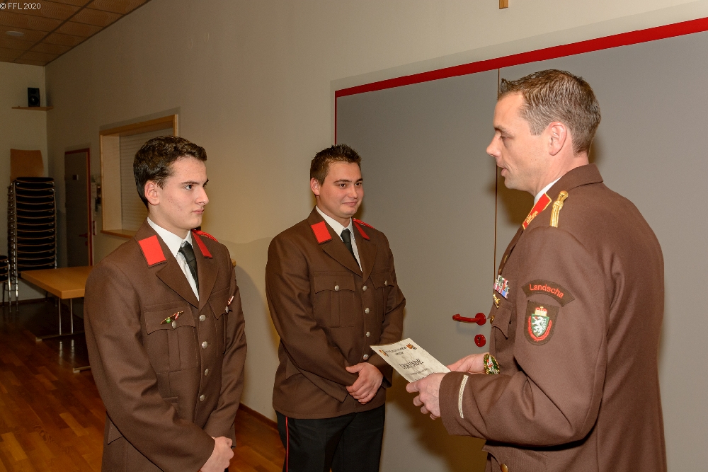 Im Anschluss wurden 2 Kameraden zum FM angelobt, 6 Kameraden befördert und verdiente Kameraden für ihre Leistung ausgezeichnet. Besonders freute es uns wieder, drei Jungfeuerwehrmänner als Neuaufnahme in unserer Mitte begrüßen zu können.