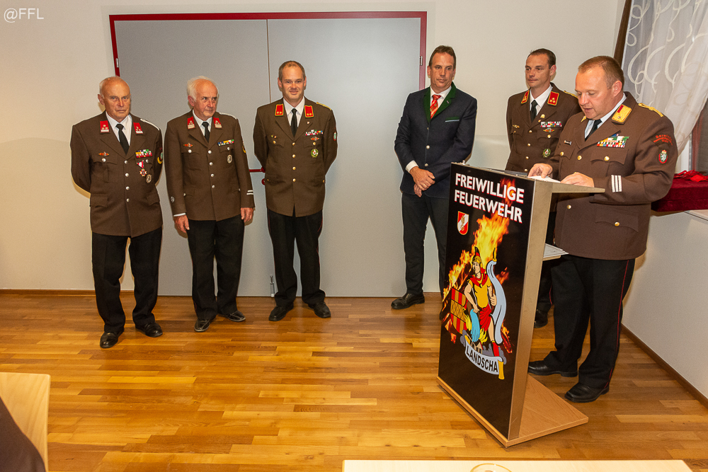 Bei der 97. Wehrversammlung der Freiwilligen Feuerwehr Landscha am 25.09.2021 im Feuerwehrhaus Landscha konnte HBI Johannes Zöhrer: Bürgermeister Gottfried Heinz, ABI Christian Lechner, Vizebürgermeister Johannes Strobl, Bereichsatemschutzbeauftragten HBI.F Herbert Buchgraber, Abschnittsseniorenbeauftragten EHBI Josef Schwaiger, sowie zahlreiche Ehrendienstgrade begrüßen.