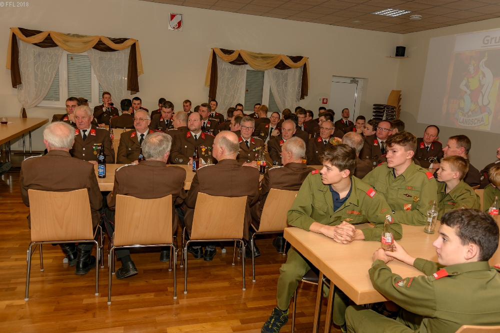 Bei der 94. Wehrversammlung der Freiwilligen Feuerwehr Landscha am 27.01.2018 im Feuerwehrhaus Landscha konnte HBI Johannes Zöhrer zahlreiche Ehrengäste wie Bürgermeister Gottfried Heinz, Dechant Mag. Anton Herk-Pickl, ABI Christian Lechner, Bezirksatemschutzbeauftragten OBI.F Herbert Buchgraber, sowie zahlreiche Ehrendienstgrade begrüßen.