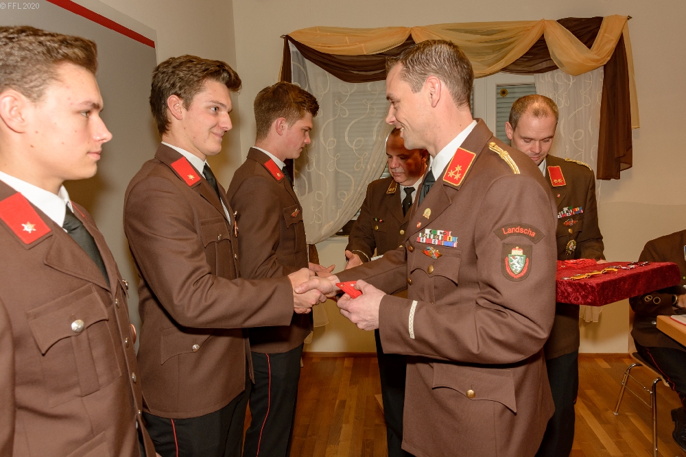 Im Anschluss wurden 2 Kameraden zum FM angelobt, 6 Kameraden befördert und verdiente Kameraden für ihre Leistung ausgezeichnet. Besonders freute es uns wieder, drei Jungfeuerwehrmänner als Neuaufnahme in unserer Mitte begrüßen zu können.