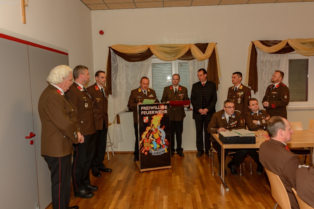 Bei der 96. Wehrversammlung der Freiwilligen Feuerwehr Landscha am 25.01.2020 im Feuerwehrhaus Landscha konnte HBI Johannes Zöhrer zahlreiche Ehrengäste wie Bürgermeister Gottfried Heinz, BR Thomas Brandl, Pfarrer Anton Herk-Pickl, ABI Christian Lechner, Vizebürgermeister Johannes Strobl, Gemeindekassier Tanja Hierzberger, Bereichsatemschutzbeauftragten OBI.F Herbert Buchgraber, Abschnittsseniorenbeauftragten EHBI Josef Schwaiger, das Kommando der Stadtfeuerwehr Weiz ABI Christian Lechner und OBI Karl Feichter sowie zahlreiche Ehrendienstgrade begrüßen.
